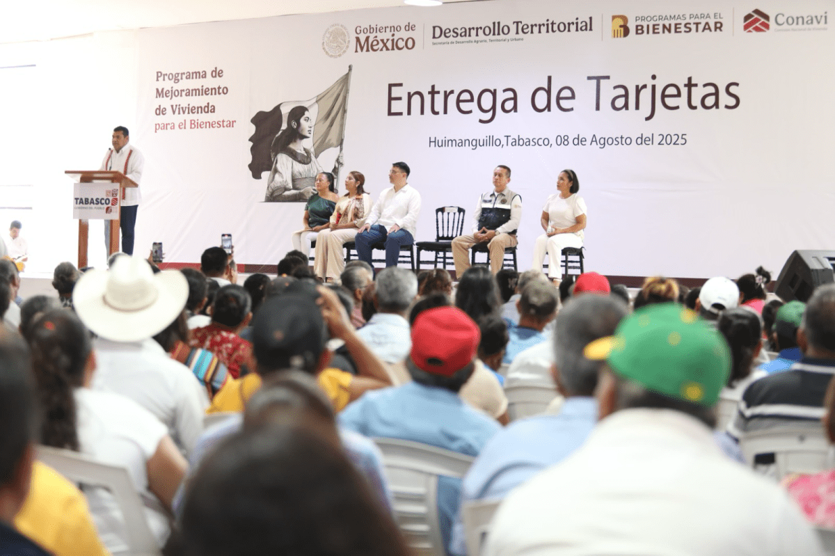 El Gobierno de México, a través de la Comisión Nacional de Vivienda (Conavi) y en coordinación con el Gobierno de Tabasco que encabeza Javier May Rodríguez, entregó 2 mil 153 tarjetas del Programa de Mejoramiento de Viviendas a familias de 12 comunidades de Huimanguillo, con una derrama económica superior a 86 millones 120 mil pesos.