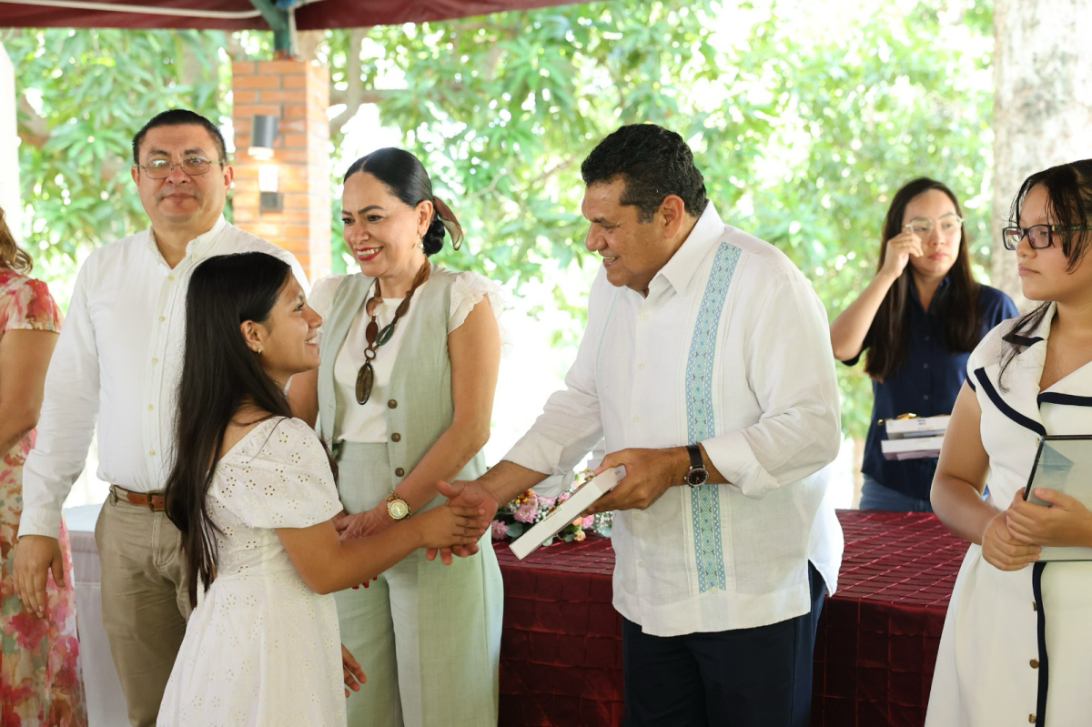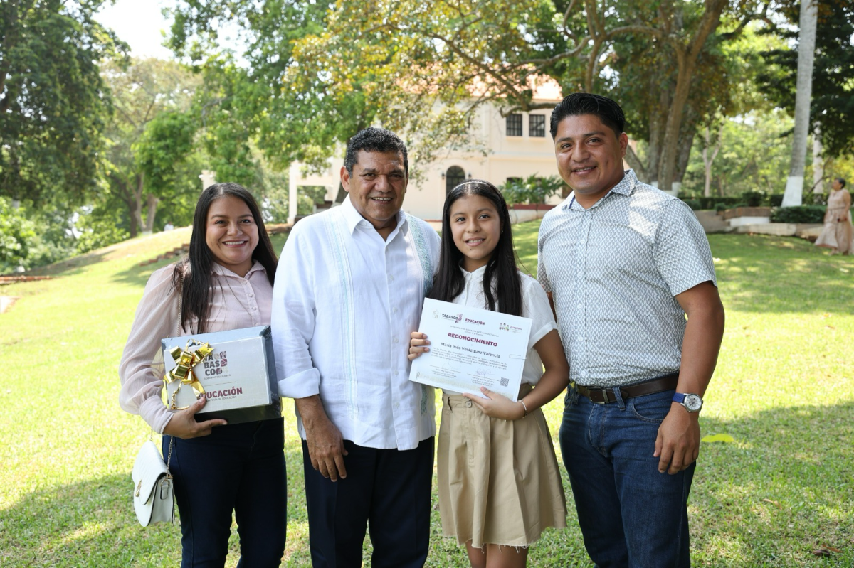 En un encuentro realizado en la Casa de la Laguna, el mandatario entregó reconocimientos y tabletas electrónicas a las y los galardonados, destacando que “su esfuerzo es motivo de orgullo para todo el pueblo de Tabasco, que reconoce en ustedes un ejemplo de disciplina y superación escolar”.