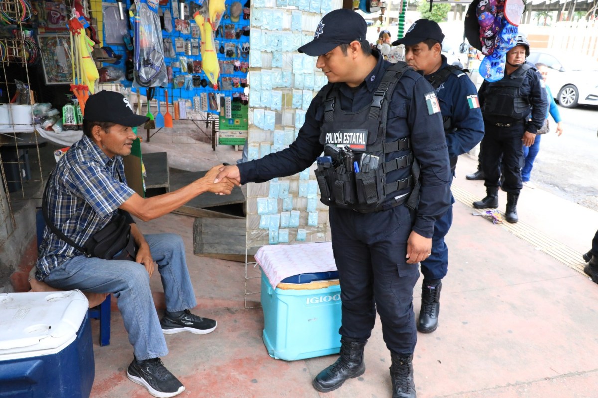 En distintas zonas del municipio de Centro, los elementos de seguridad también dialogaron con familias, jóvenes y comerciantes, quienes agradecieron el acercamiento de los uniformados.
