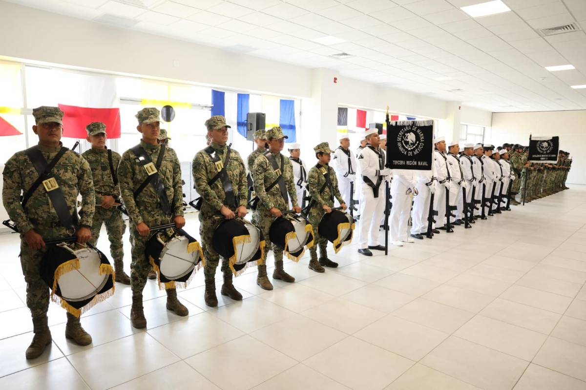 El vicealmirante Héctor Rodríguez Cacheux, jefe de Estado Mayor de la Tercera Región Naval, reprodujo el mensaje oficial del almirante Raymundo Pedro Morales Ángeles, secretario de Marina, quien destacó la valentía, lealtad y compromiso histórico de la Armada con la defensa del país y la soberanía marítima.