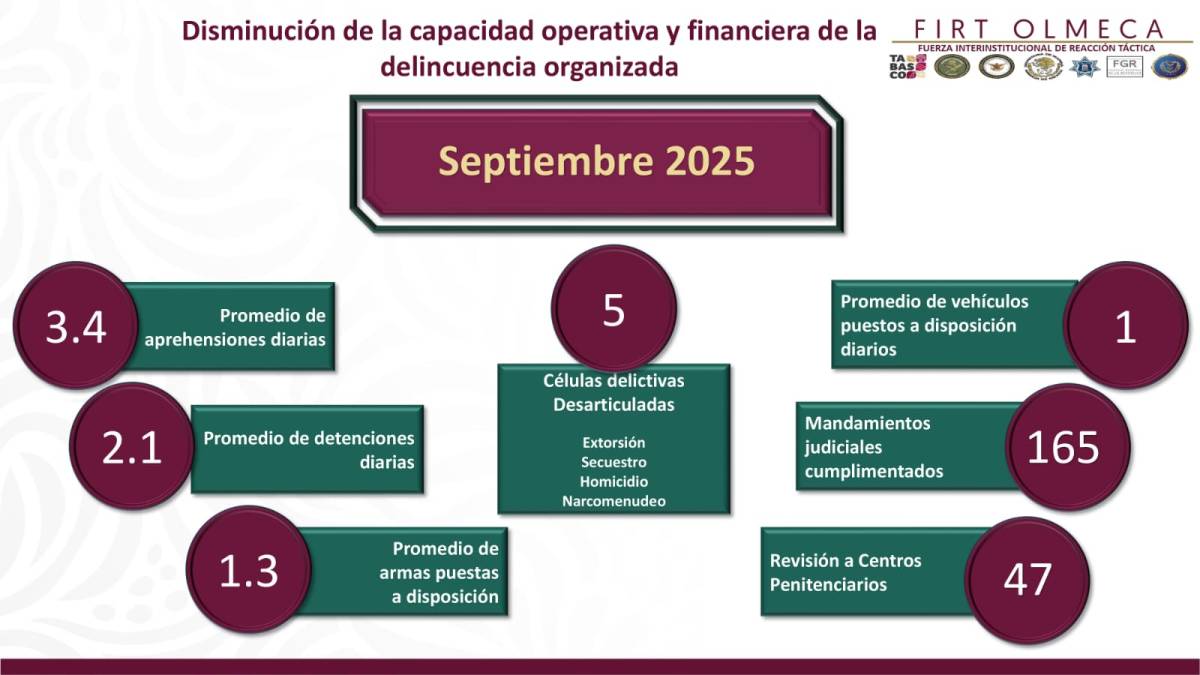 Amaya Guerrero subrayó que estas acciones han debilitado considerablemente la capacidad operativa y financiera de la delincuencia organizada, destacando que en septiembre se realizaron: