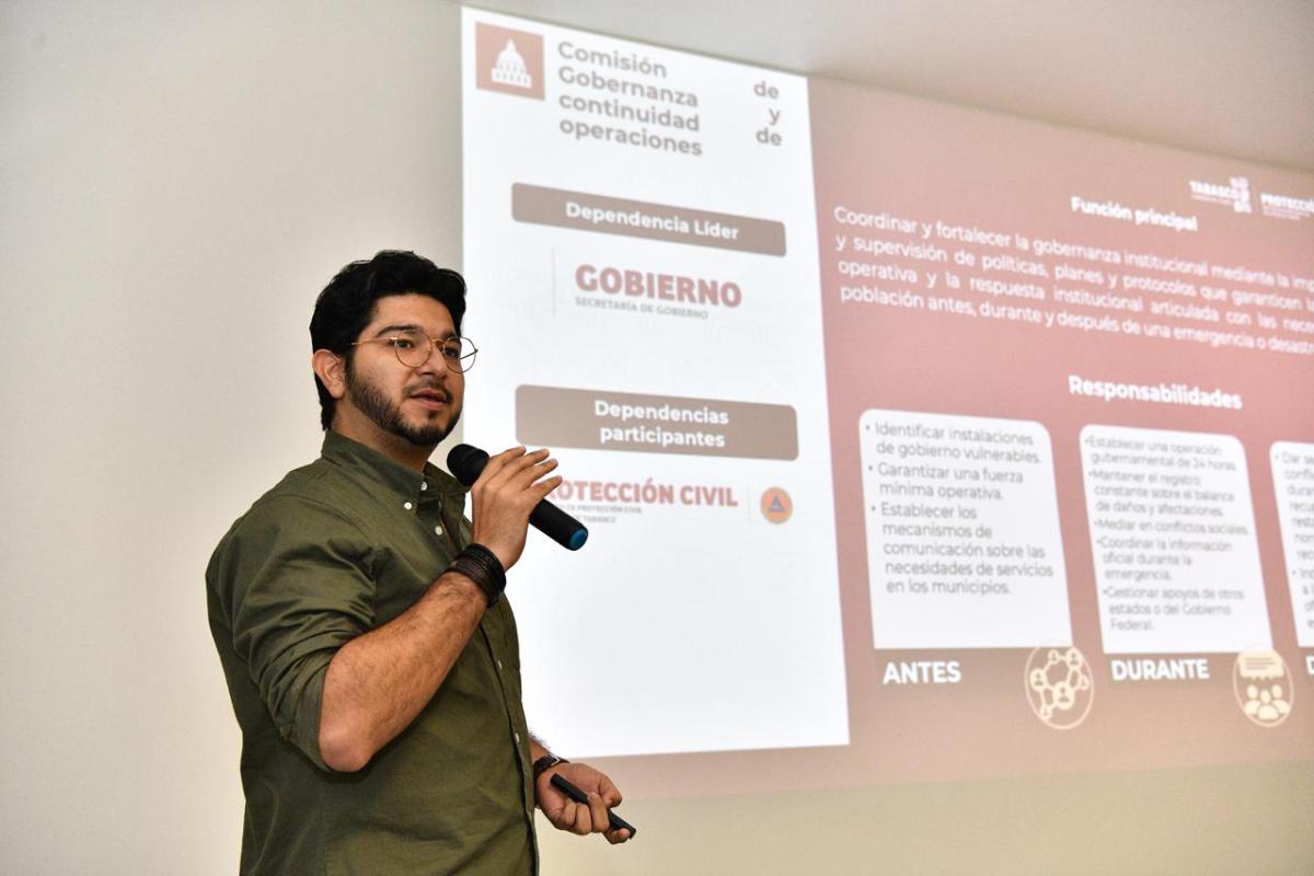 El director operativo del IPCET, Gilberto Segovia Quintero, presentó los escenarios de riesgo y destacó la capacidad del Centro Estatal de Operaciones de Protección Civil para operar durante las 24 horas, siempre que cuente con personal suficiente y coordinado.