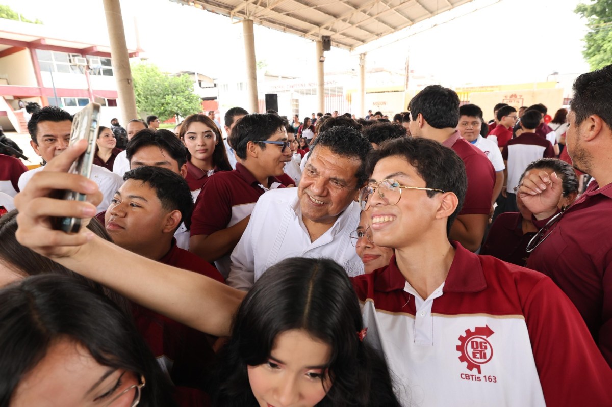 El evento se realizó en el Centro de Bachillerato Tecnológico Industrial y de Servicios (CBTIS) No. 163, en la colonia 18 de Marzo de Villahermosa, donde el mandatario estuvo acompañado por la secretaria de Educación, Patricia Iparrea Sánchez, así como por alumnos, padres de familia y autoridades de seguridad.