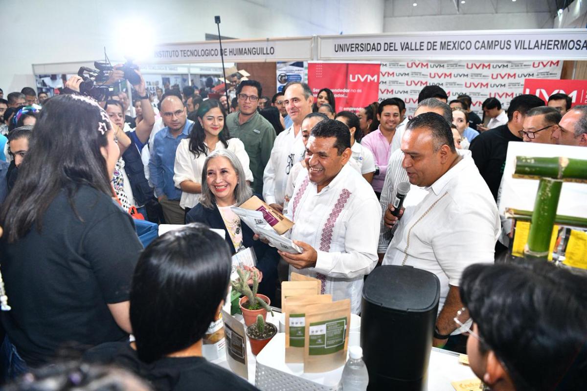 Junto a la presidenta honoraria del Sistema DIF Tabasco, Aurora Raleigh De la Cruz, el gobernador realizó un recorrido por los 160 stands de la expo, donde conoció proyectos de innovación, ciencia, tecnología, alimentos y energías limpias desarrollados por empresas, instituciones académicas y organismos públicos.
