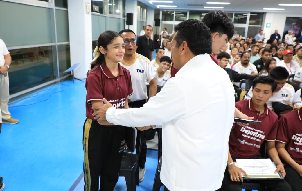 El gobernador de Tabasco, Javier May Rodríguez, encabezó este miércoles la entrega del Premio Estatal del Deporte 2025 y del Mérito Deportivo Tabasqueño, distinciones otorgadas a diez atletas y entrenadores que han sobresalido en competencias nacionales e internacionales. El evento se realizó en el Salón de Esgrima del Injudet, ante la presencia de la comunidad deportiva del estado.