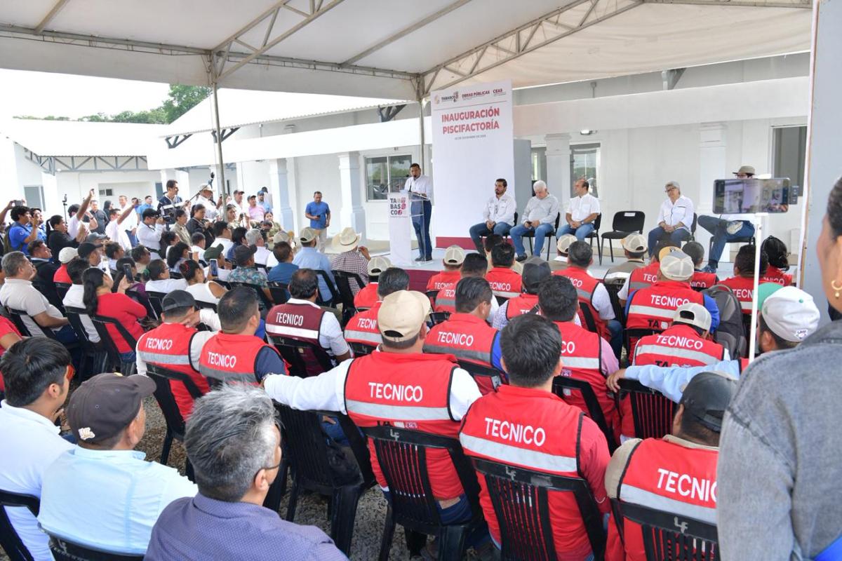 Acompañado por la secretaria de Desarrollo Agropecuario y Pesca, Luisa del Carmen Cámara Cabrales; el secretario de Ordenamiento Territorial y Obras Públicas, Daniel Casasús Ruz, y el subsecretario de Pesca y Acuicultura, Guillermo Priego León, el Gobernador detalló que la rehabilitación del recinto incluye infraestructura, sistema de abastecimiento de agua, caminos de acceso, transformadores y equipamiento de laboratorios.