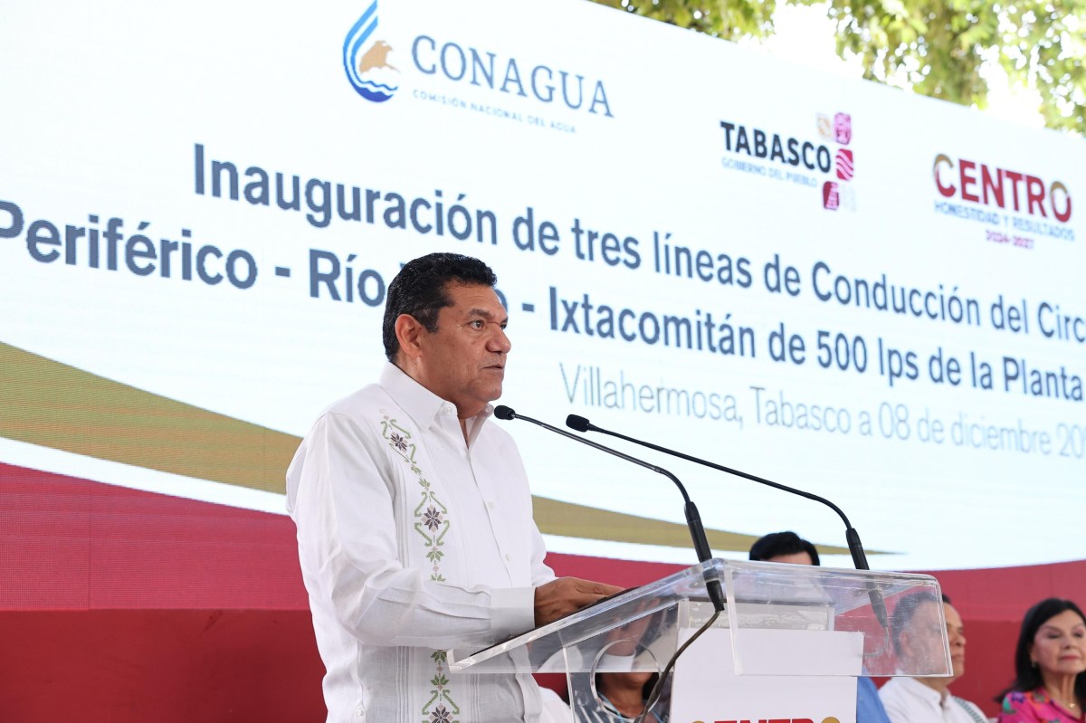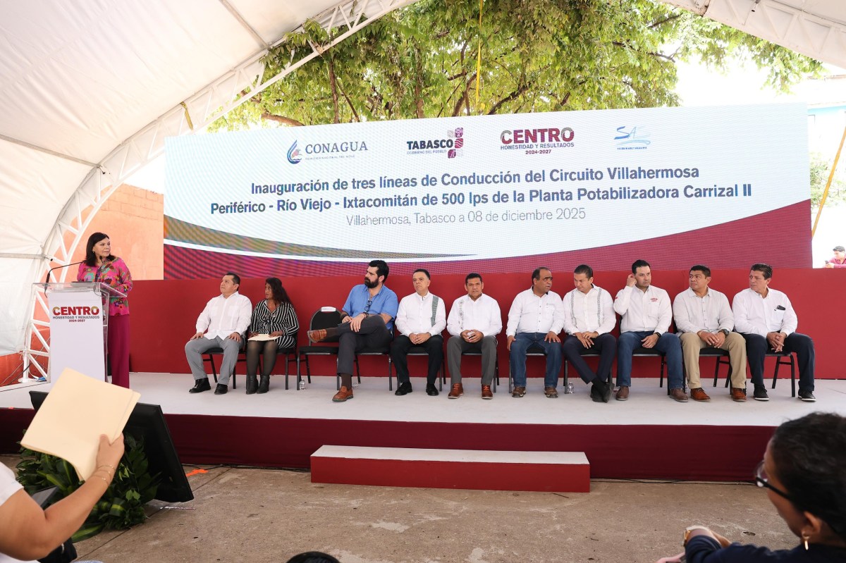 El gobernador de Tabasco, Javier May Rodríguez, encabezó este lunes la puesta en marcha de las tres líneas de conducción del Circuito Villahermosa–Periférico–Río Viejo–Ixtacomitán, pertenecientes a la Planta Potabilizadora Carrizal II, que tendrán una capacidad conjunta de 500 litros por segundo. La obra, afirmó, marcará “una nueva etapa” para cientos de familias del municipio de Centro.