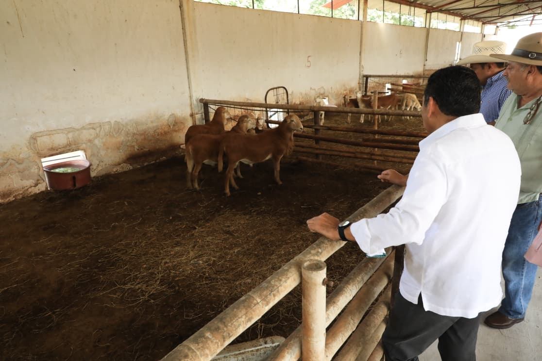 El titular del Ejecutivo estatal estuvo acompañado por los subsecretarios de Desarrollo Agrícola y Pecuario, Joaquín Alejandro Ligonio, y de Pesca y Acuicultura, Guillermo Priego León, así como por el director de Especies Menores (DEM), Jesús Falcón Becerra. Durante el recorrido, supervisó la bodega de producción de cayucos destinados al Programa de Apoyo a Embarcaciones Menores, además de las áreas de producción de ovinos y las zonas de maternidad, gestación y empadre de porcinos.