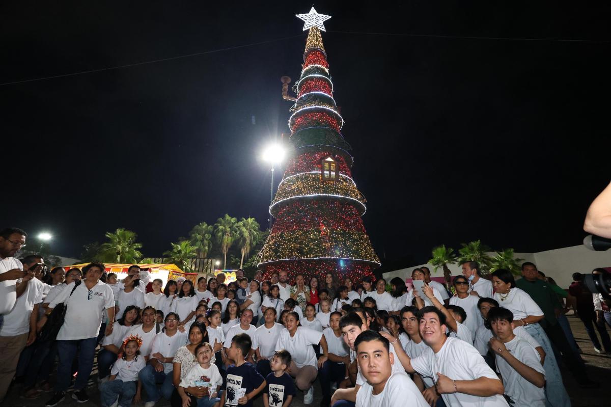 Acompañada por niñas, niños y adolescentes de los 24 centros asistenciales que administra el Sistema DIF Tabasco, así como por la secretaria de Turismo y Desarrollo Económico, Katia Ornelas Gil, y la Flor Tabasco 2025, María Fernanda Palma Miramontes, la maestra Aurora Raleigh recorrió los distintos atractivos instalados en el Parque Tabasco “Dora María”, tras encender las luces de un imponente árbol de Navidad que alberga en su interior un set para que los visitantes se tomen la tradicional fotografía del recuerdo.