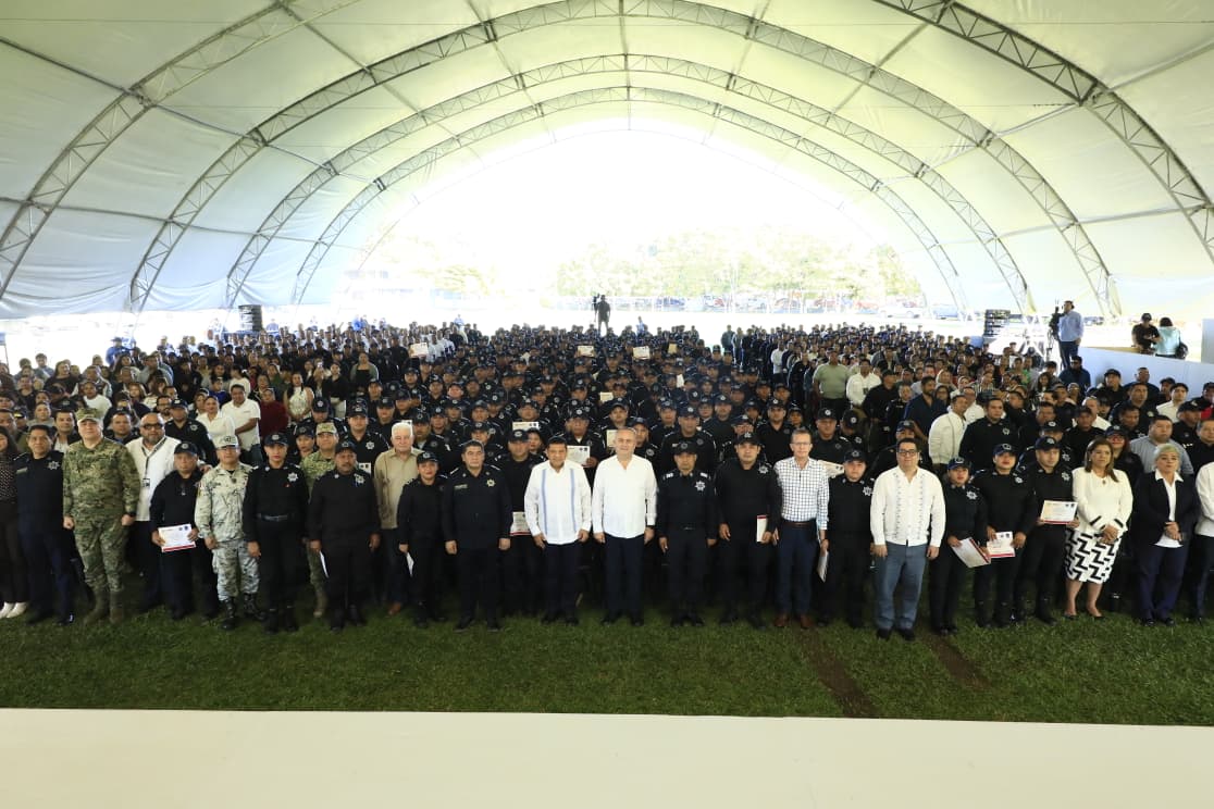 Con la entrega de 284 ascensos a elementos de la Policía Estatal de Proximidad y de la Policía Estatal de Caminos, el Gobierno del Pueblo avanzó en la profesionalización de las instituciones de seguridad y en el fortalecimiento de la construcción de la paz, afirmó el gobernador Javier May Rodríguez.