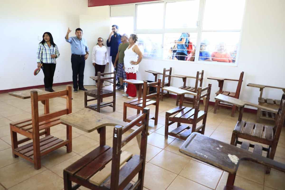 La alcaldesa Villamayor Notario recordó que, tras una década sin respuesta, la comunidad recibió el compromiso del hoy gobernador para la construcción de aulas del Telebachillerato, lo que permitió mejorar las condiciones educativas de la zona.