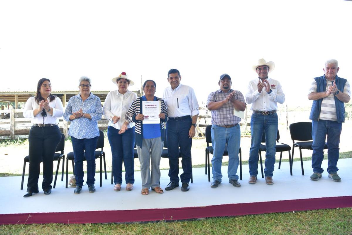 Acompañado por las presidentas municipales Beatriz Castañón Félix y Sandra Hernández Jiménez, el mandatario estatal destacó que los apoyos entregados —integrados por 2 mil novillonas y 200 sementales— reafirman el compromiso del Gobierno del Pueblo con los pequeños productores y con el desarrollo económico de las comunidades rurales.