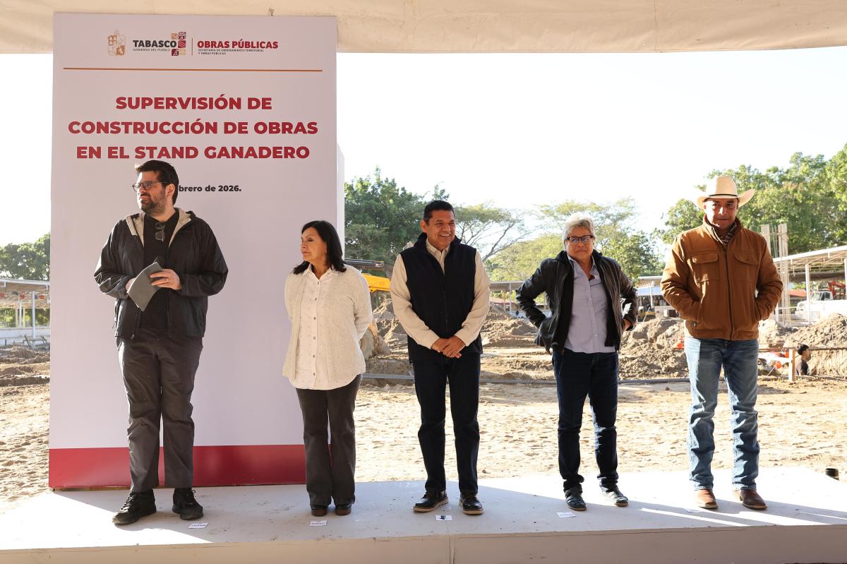 Al supervisar el avance de la construcción de la nave de exposiciones y restaurante en el Stand Ganadero del Parque Tabasco “Dora María”, obra en la que el Gobierno del Pueblo invierte más de 41.7 millones de pesos, el gobernador Javier May Rodríguez informó que a partir del próximo mes dará inicio la obra pública en todo el estado correspondiente al ejercicio 2026.