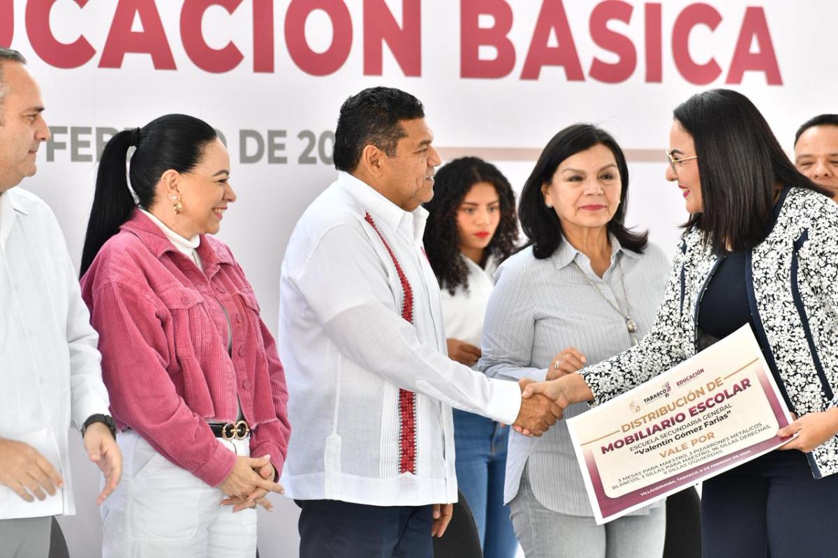 Como parte del compromiso de fortalecer la educación como eje de la transformación en Tabasco, el gobernador Javier May Rodríguez dio el banderazo de salida a la entrega de más de 13 mil 500 unidades de mobiliario escolar para planteles de educación básica, en beneficio de miles de alumnas y alumnos en toda la entidad.