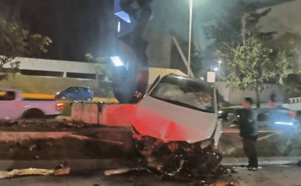 La noche de este domingo se registró un accidente vehicular sobre la avenida Paseo Tabasco, a la altura de Plaza Galerías, en Villahermosa, donde el conductor de una camioneta BMW perdió el control de la unidad y sufrió un fuerte percance.