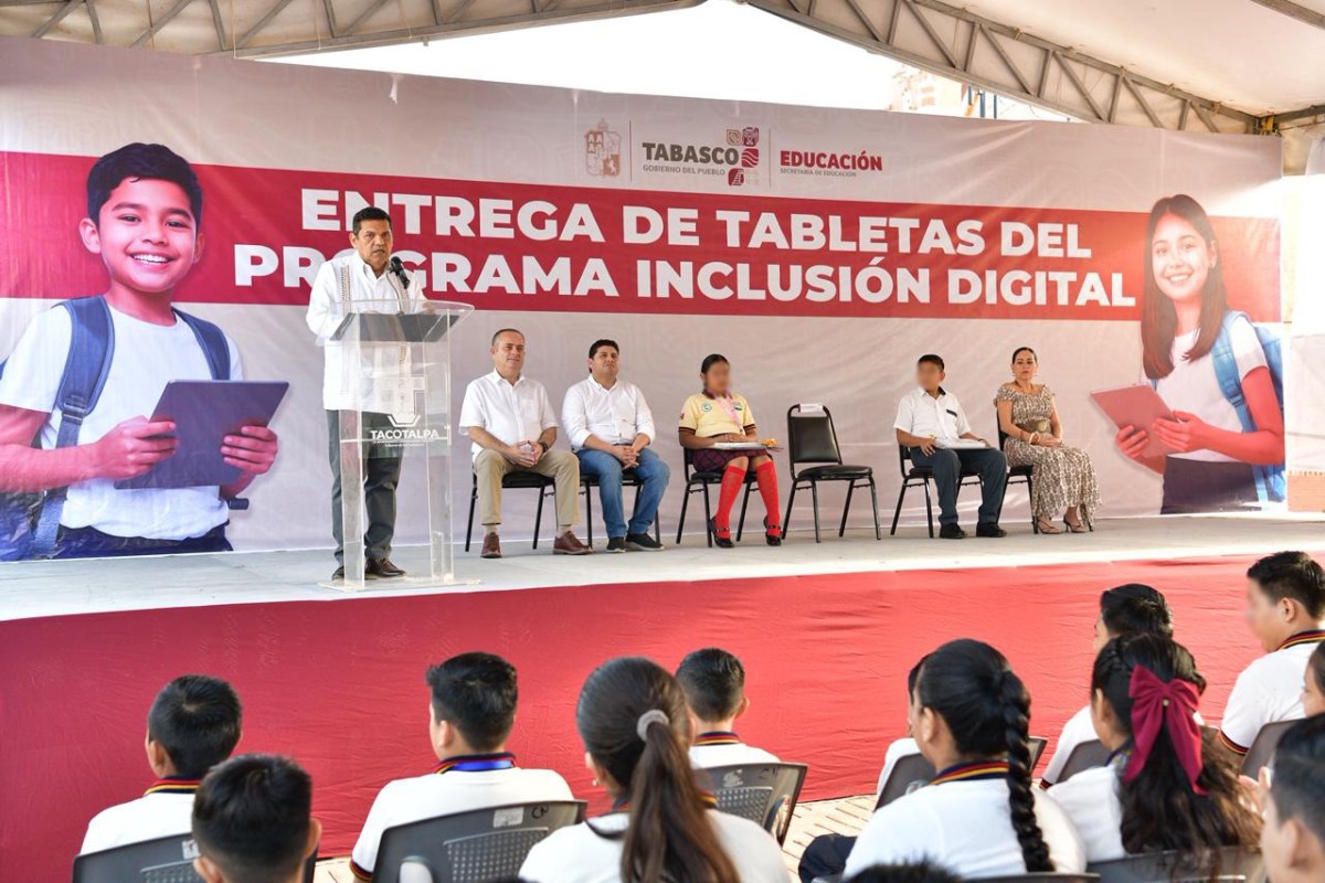 El gobernador de Javier May Rodríguez encabezó la entrega de 2 mil 589 tabletas electrónicas a estudiantes de primer grado de secundaria en municipios de la Región Sierra, como parte del programa “Inclusión Digital”, con el objetivo de fortalecer el acceso a herramientas tecnológicas en el proceso educativo.