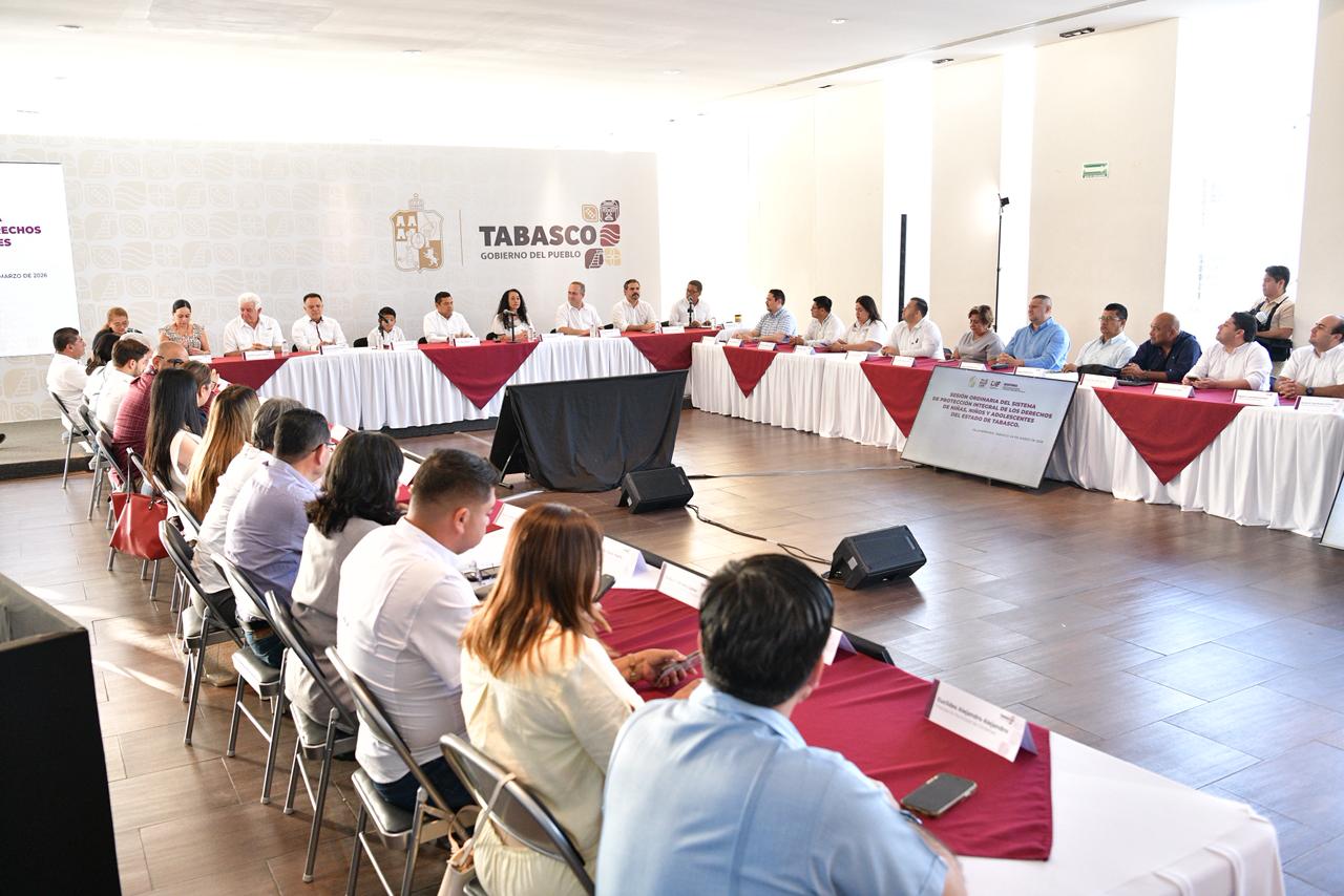 El gobernador de Javier May Rodríguez encabezó la Sesión Ordinaria 2026 del Sistema de Protección Integral de los Derechos de Niñas, Niños y Adolescentes del Estado de Tabasco, en la que se aprobaron diversos acuerdos orientados a fortalecer la política pública de protección y garantía de derechos de la infancia y adolescencia en la entidad.