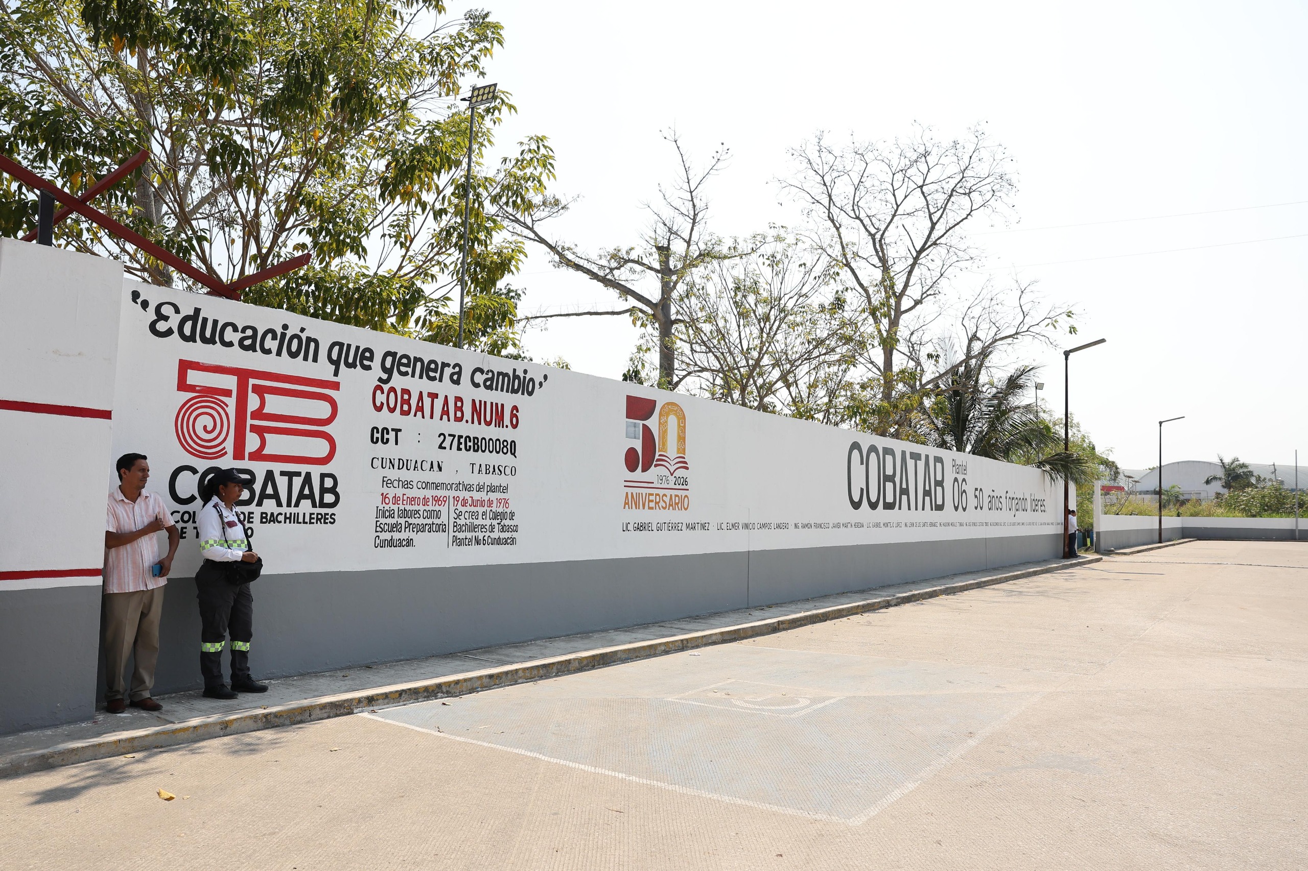 El gobernador Javier May Rodríguez dio el banderazo de inicio a la construcción de obras educativas y de equipamiento urbano que mejorarán la movilidad y seguridad en el plantel número 6 del Colegio de Bachilleres de Tabasco (Cobatab), ubicado en la cabecera municipal de Cunduacán.