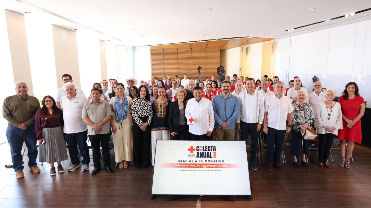 El gobernador de Tabasco, Javier May Rodríguez, encabezó la ceremonia de inicio de la Colecta Anual 2026 de la Cruz Roja Mexicana Delegación Tabasco, durante la cual el gobierno estatal entregó un donativo de 12 millones de pesos para apoyar las labores de la institución.