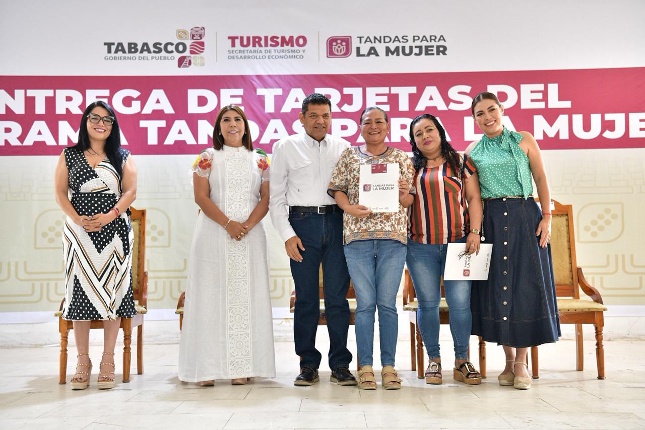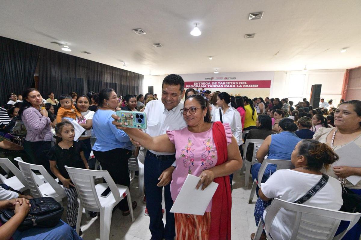El gobernador de Tabasco, Javier May Rodríguez, encabezó la entrega de mil 500 tarjetas del programa “Tandas para la Mujer” en beneficio de igual número de emprendedoras del municipio de Huimanguillo.