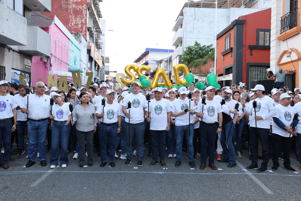 Acompañado por el rector Guillermo Narváez Osorio, el mandatario inició el recorrido frente al Instituto Juárez y avanzó junto a miles de estudiantes hacia el Parque Juárez, en el Centro Histórico de la capital tabasqueña.