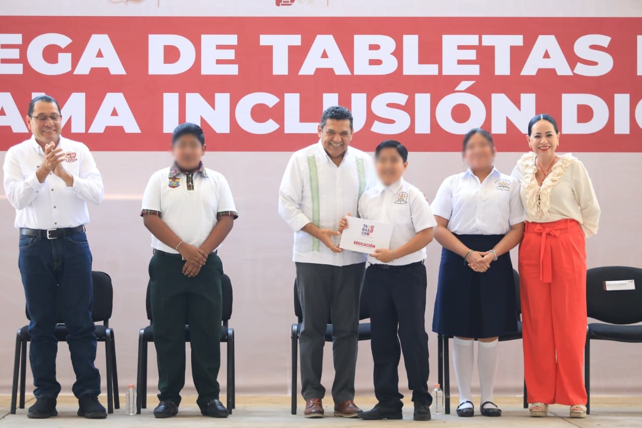 El gobernador Javier May Rodríguez informó que el Gobierno estatal cumplió la meta de entregar 42 mil 851 tabletas electrónicas a estudiantes de primer grado de secundaria durante este año, como parte del programa Inclusión Digital.