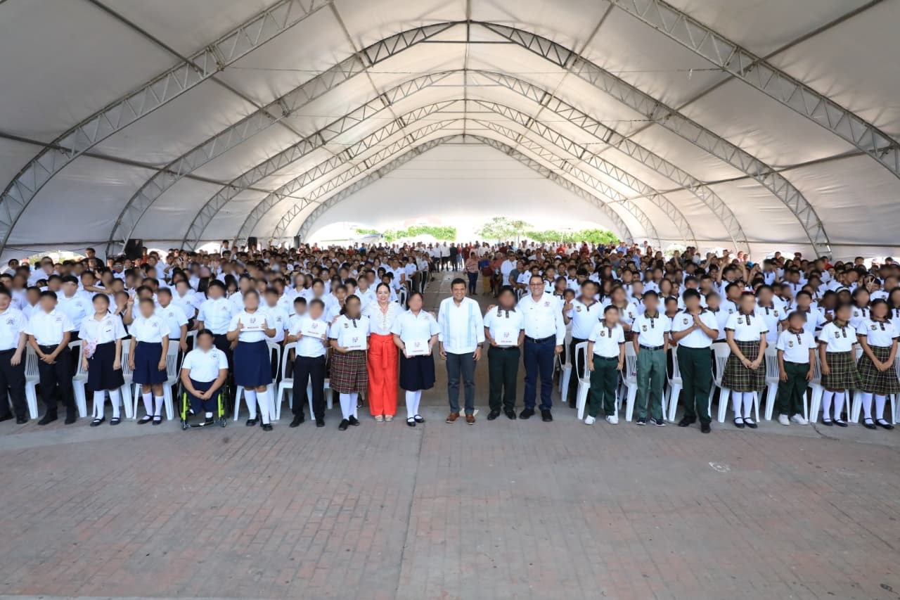 Asimismo, destacó que los alumnos cuentan con apoyos complementarios como las becas “Rita Cetina” en secundaria y “Benito Juárez” en nivel medio superior, además de que, con respaldo del Gobierno federal encabezado por Claudia Sheinbaum Pardo, se ampliarán los beneficios a estudiantes de nivel superior.