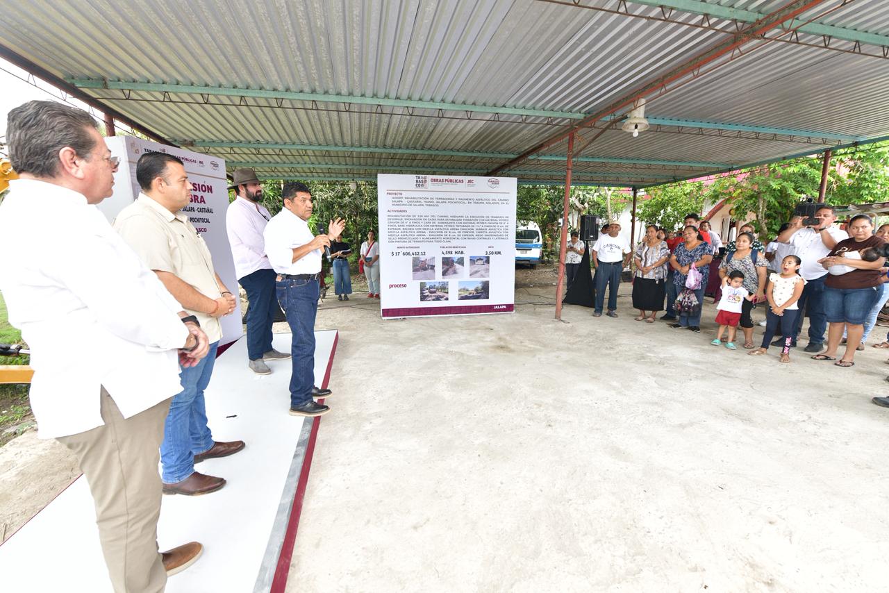 El gobernador Javier May Rodríguez supervisó los trabajos de rehabilitación del camino Jalapa–Castañal, en el tramo Jalapa-Pochitocal, donde se invierten más de 17 millones de pesos para mejorar la conectividad y seguridad vial.