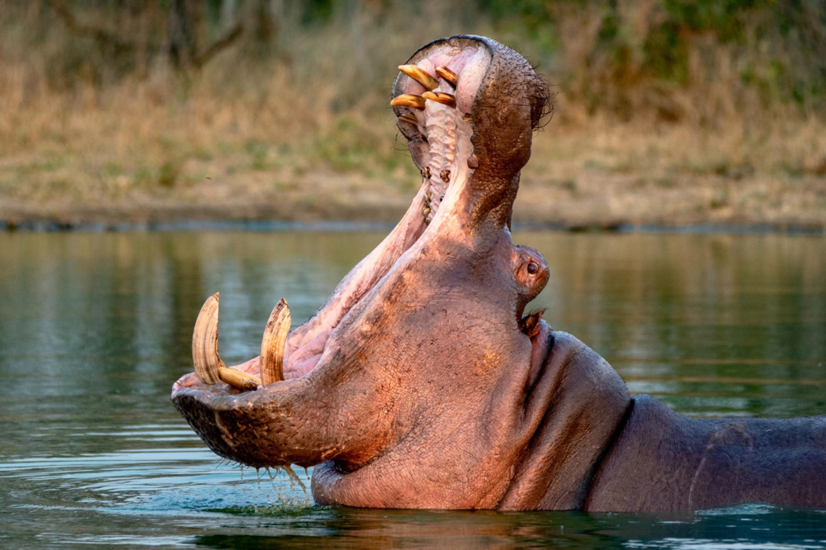 El hipopótamo es el tercer animal terrestre más grande del mundo, después del elefante y el rinoceronte blanco, con un peso de entre mil 300 y 3 mil 500 kilogramos, y cuenta con una de las mordidas más letales de la fauna silvestre.