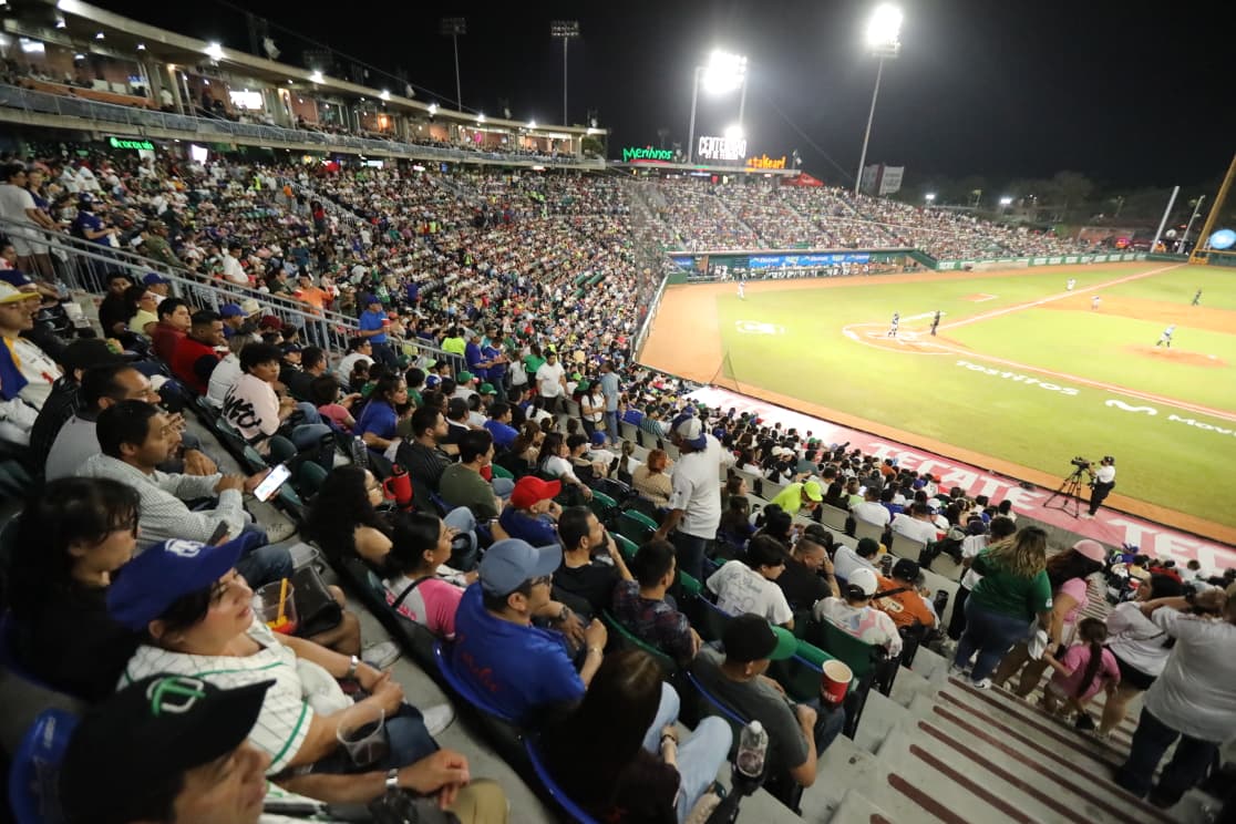 La afición tabasqueña llenó el estadio y vivió una jornada festiva junto a las 17 embajadoras de la Feria Tabasco, quienes convivieron con los asistentes en el inicio de la campaña beisbolera.