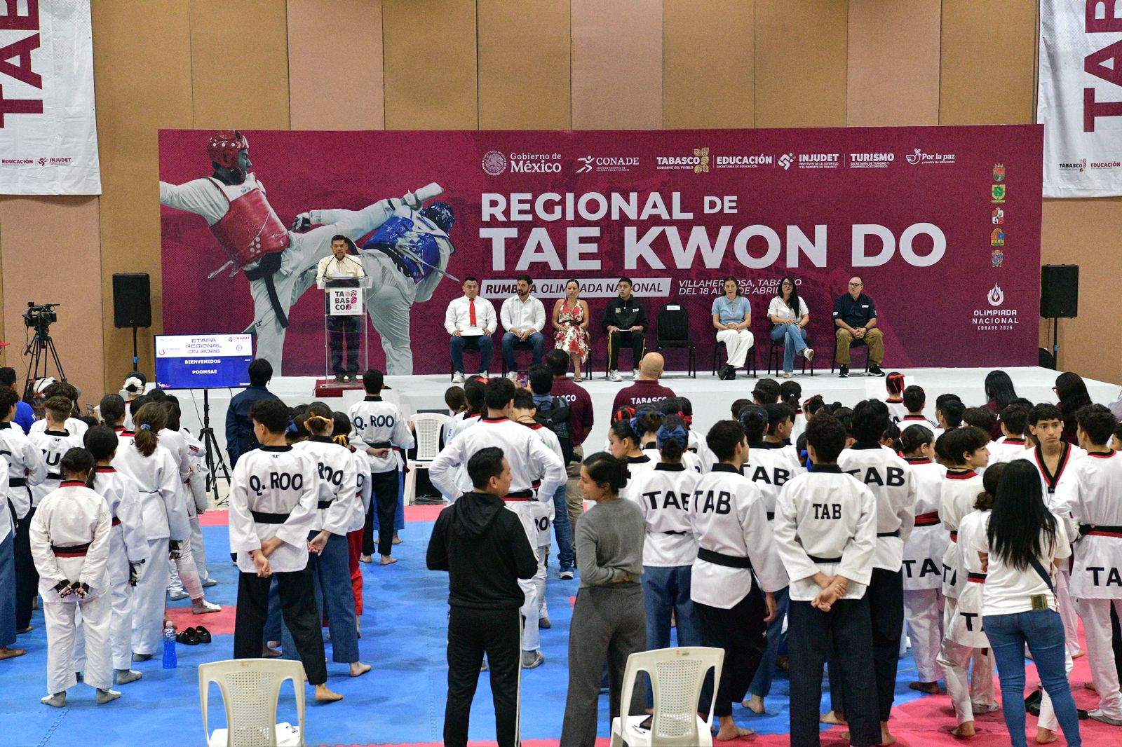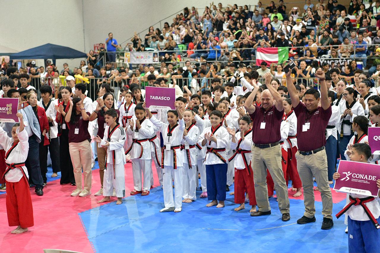 Con la participación de 500 atletas, el gobernador de Tabasco, Javier May Rodríguez, inauguró este sábado el Torneo Regional de Taekwondo clasificatorio a la Olimpiada Nacional CONADE 2026.