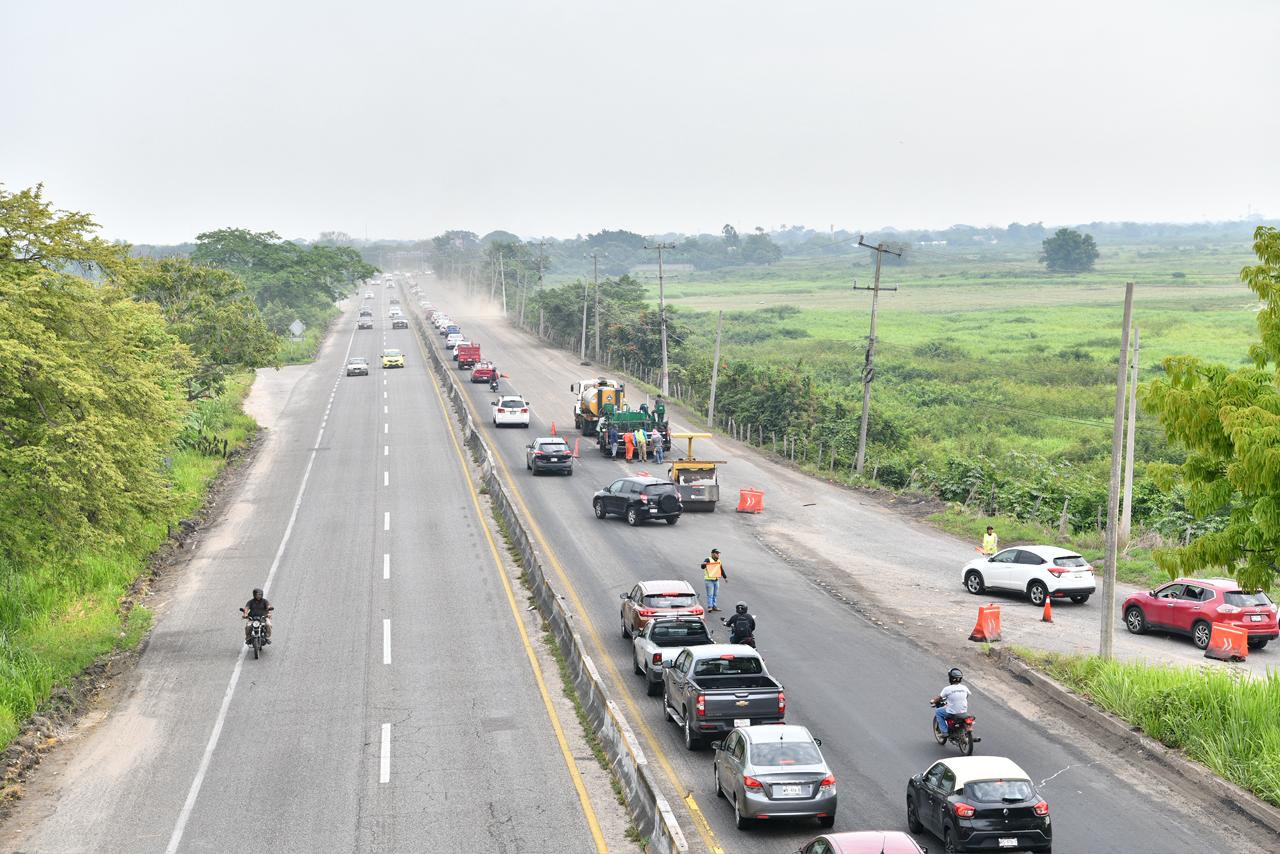 Asimismo, se informó que gran parte de los cerca de 75 kilómetros que conectan la capital tabasqueña con el puerto de Frontera ya se encuentran en mejores condiciones, lo que permite una circulación más ágil y segura.